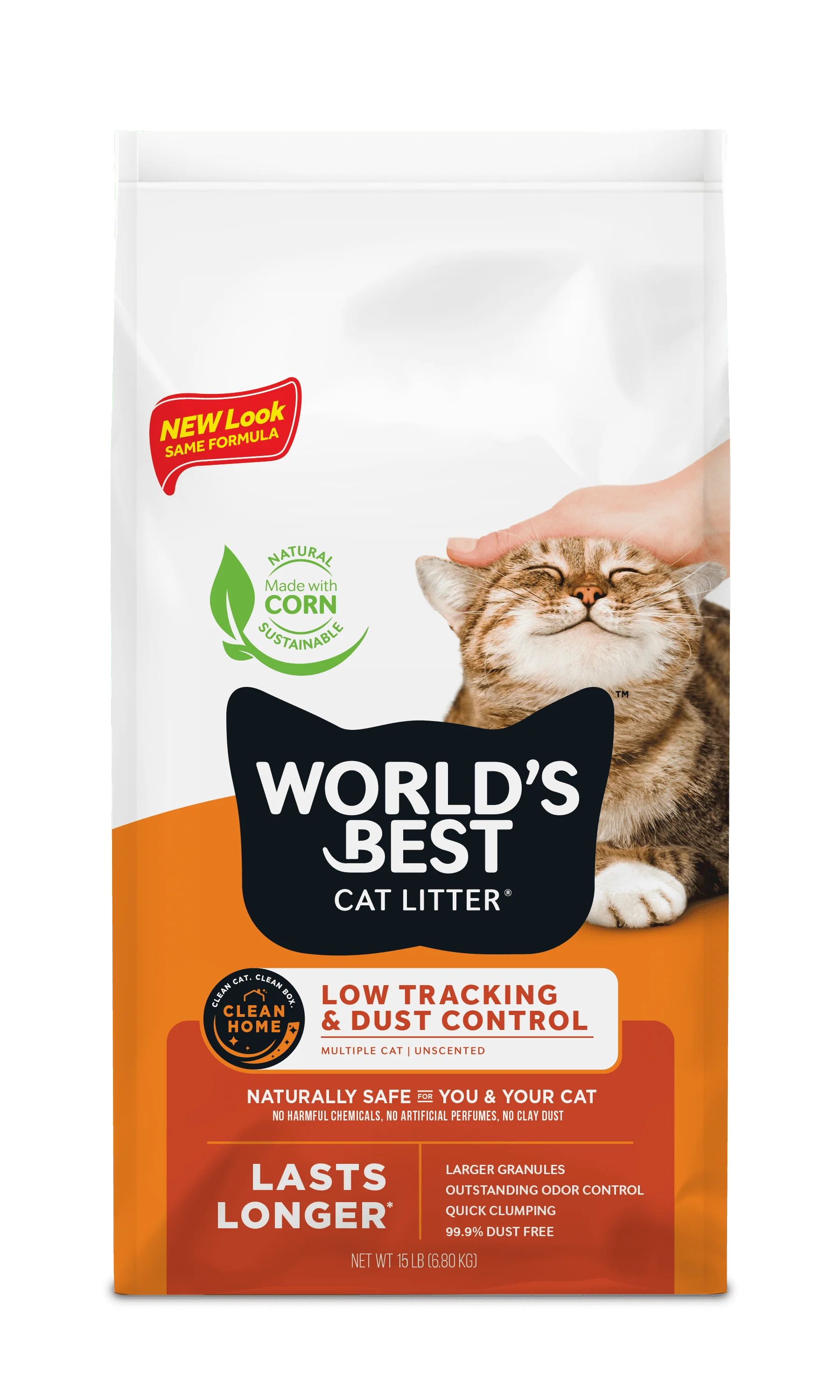 Low Tracking & Dust Control formula – the ideal solution for homes with two or more cats. Made from whole-kernel corn grown in the U.S., this formula features larger granules to help keep litter in the box and is virtually dust-free, ensuring a clean box, clean cat, and clean home. It offers quick clumping and outstanding odor control without any added scent. formulas are made from natural, renewable ingredients, containing no harmful chemicals, synthetic perfumes, or clays. Transition slowly by starting with one-third new Low Tracking & Dust Control formula added to your current litter, gradually increasing the ratio until fully transitioned. Although it has fewer days of use due to the larger granule size, it lasts longer than leading clay litters thanks to its super-absorbent whole-kernel corn.