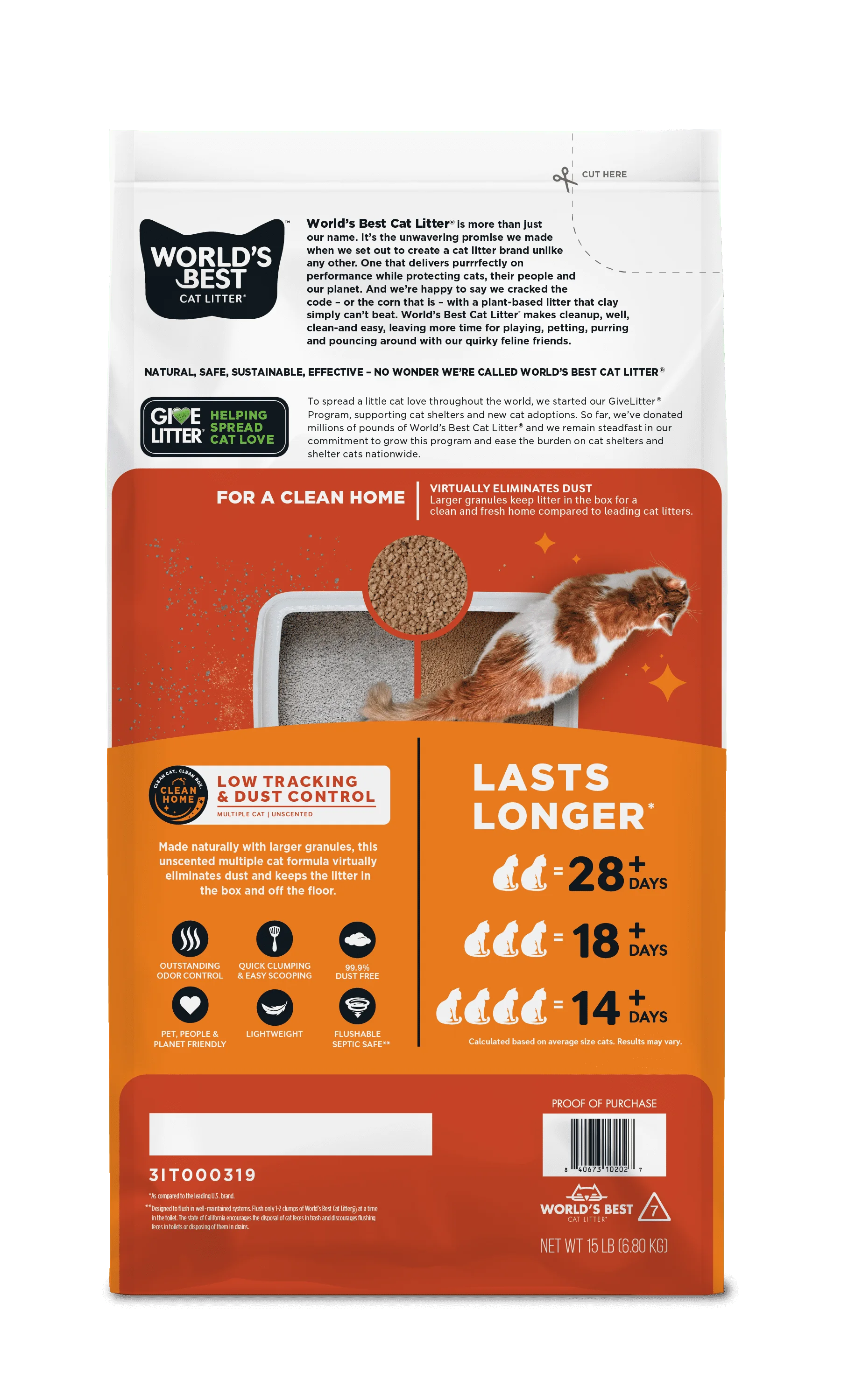 Best Cat Litter Low Tracking & Dust Control Unscented Cat Litter | Flushable | 15 lb