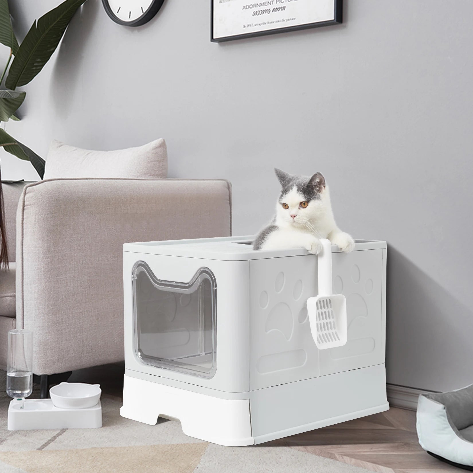Designed for hassle-free maintenance, the removable drawer allows easy litter scooping and replacement while the foldable design enables fast storage