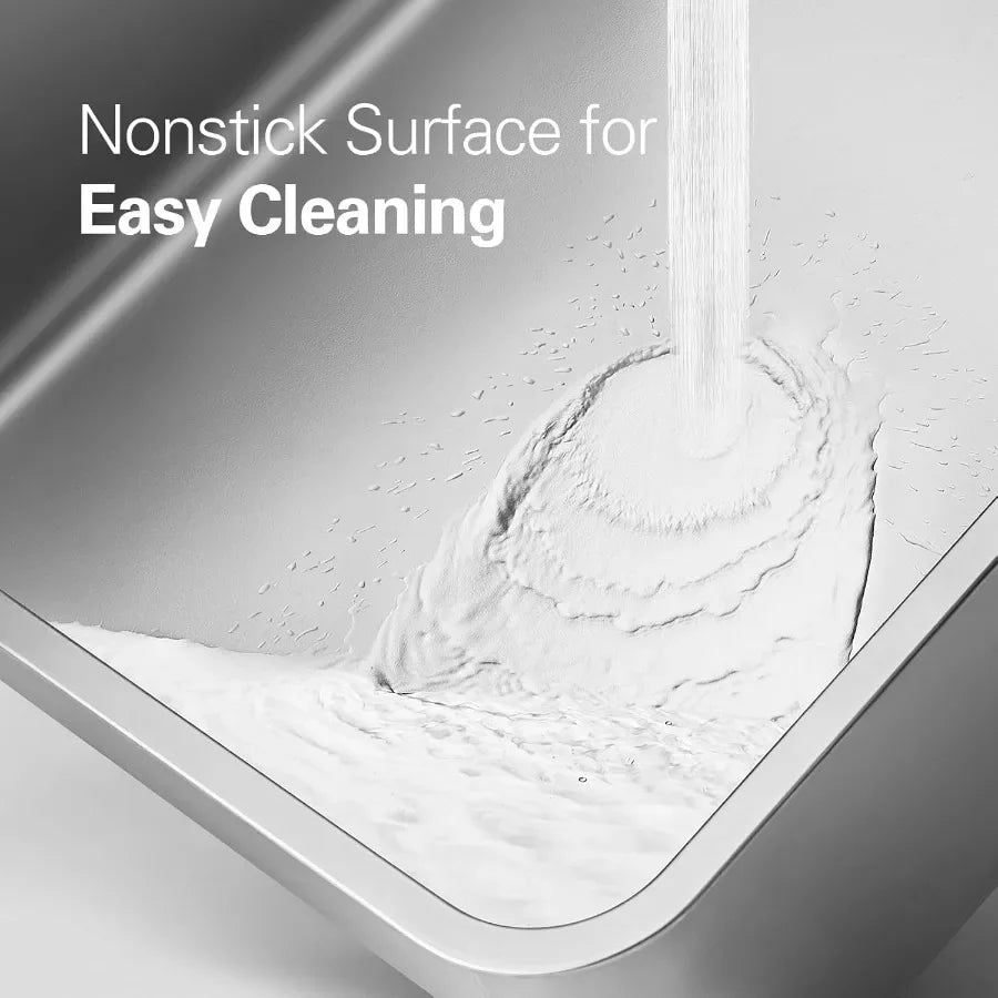 【Easy Cleaning for Odor-free Space】: Nonstick surface of this xl stainless steel kitty litter box makes cleaning a piece of cake, as waste slides out effortlessly with a quick rinse of water. Unlike plastic alternatives, the stainless steel material does not absorb stains or odors, maintaining a fresh and hygienic environment for your cat