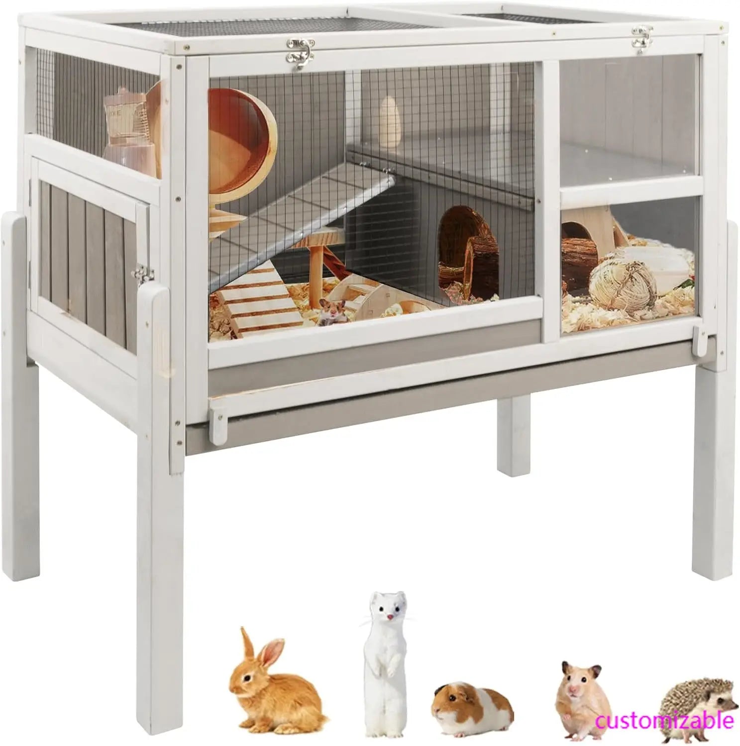 Guinea Pig Cages Indoor, Wooden Guinea Pig Cages with Stand, Rabbit Cage Hutch with Ramp and Hideout, Small Animals Cage Habitat with Not Leakage Pull Out Tray