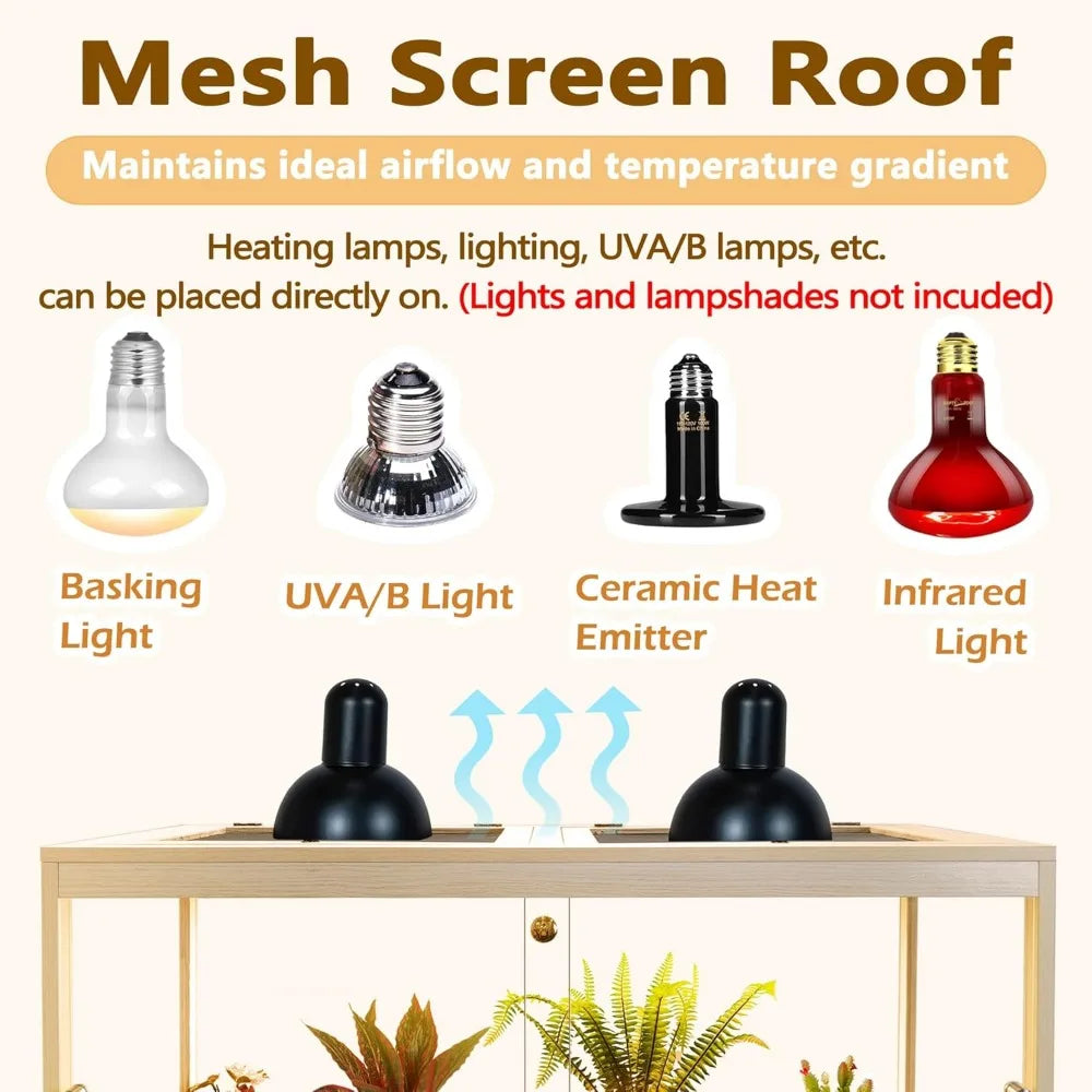Large Bearded Dragon Enclosure with Legs, Tortoise Habitat featuring Metal Mesh Lid, Secure Lockable Reptile Cage, Snake Tank