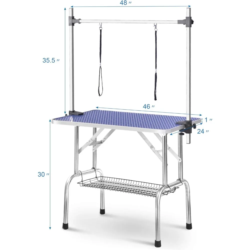 Pet Dog Grooming Table, Adjustable Large Heavy Duty Professional Foldable Trimming Stage with Arms, Noose, Mesh Tray