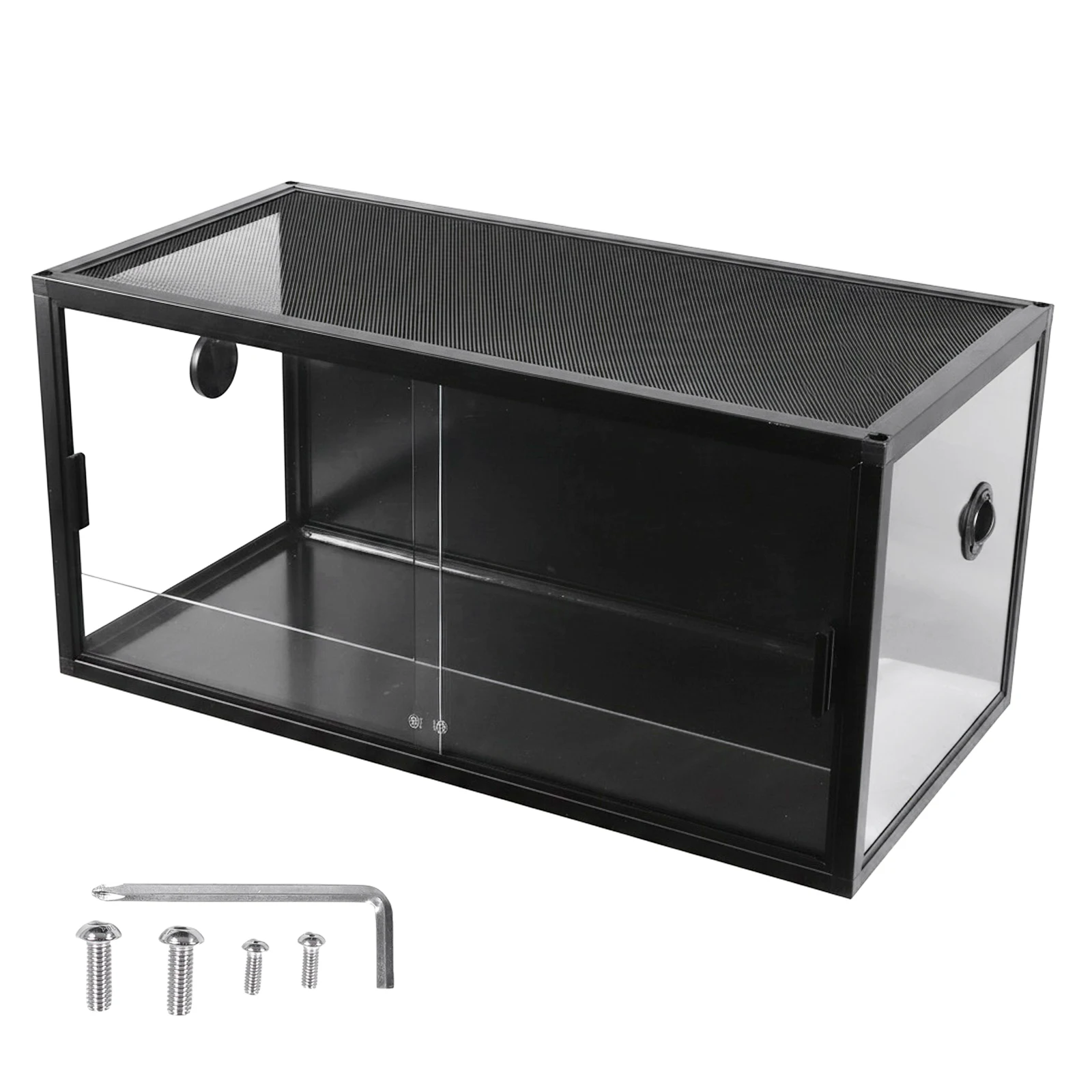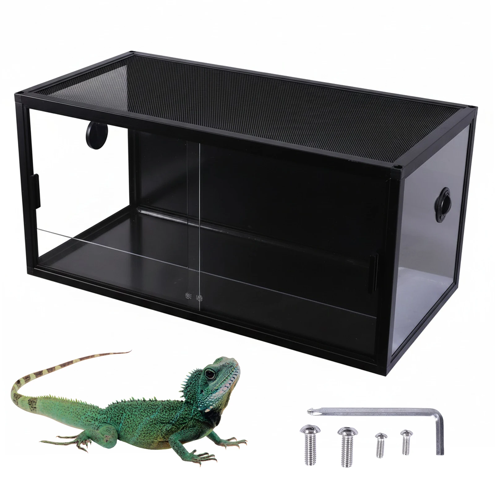 4.Highly Compatible: With a top screen offering ample and only 28% coverage, this climbing pet tank accommodates various reptile accessories and equipment, such as heating lamps, humidifiers, misters, and UVA/UVB lamps.