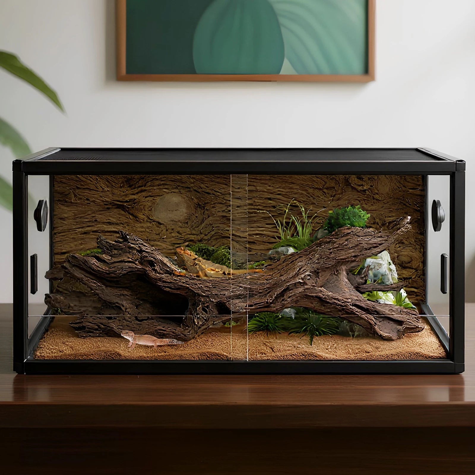 2.Worry-Free Design: The fully enclosed plant gecko ecological tank structure leaves no slots, ensuring snakes cannot escape. Sturdy glass doors feature minimal door slots, providing peace of mind.