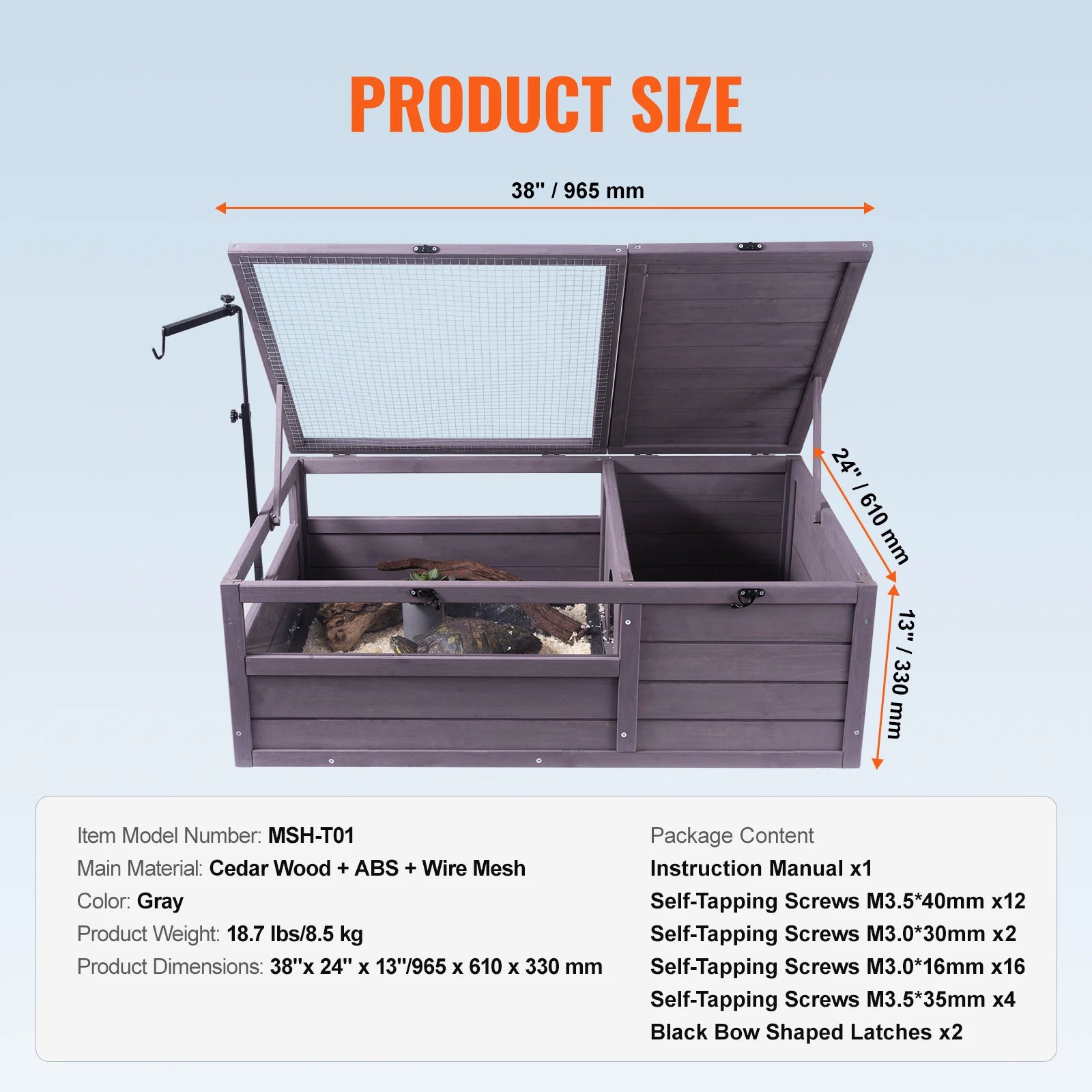 Simple Assembly: Designed for easy setup, the turtle enclosure includes pre-drilled holes and assembly instructions. Even if you've never assembled similar products, you can effortlessly assemble them and provide a sturdy, comfortable home for your pet!