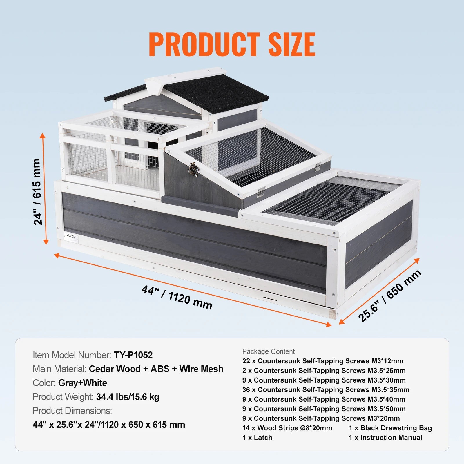 Product Dimensions: 44" x 25.6"x 24"/1120 x 650 x 615 mm