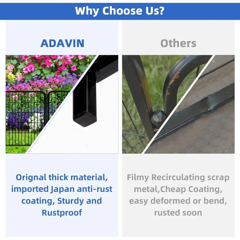 - Design and Improvement: 1) ADAVIN Garden Fence Designed with Low Gate, Which Is More Convenient for both People and Small Pets to Enter and Exit. 2) An Extra Insertion Bar, You Can Splice It into Any Shape without Leaving A Panel. 3) The Item Come with A Set of Easy Carry Straps for Camping. 4)Our Connecting Rods with Pointed Tips are Designed to be Longer, So You May Insert the Poles Deeper into The Soil to Make Sure The Installation more Stable