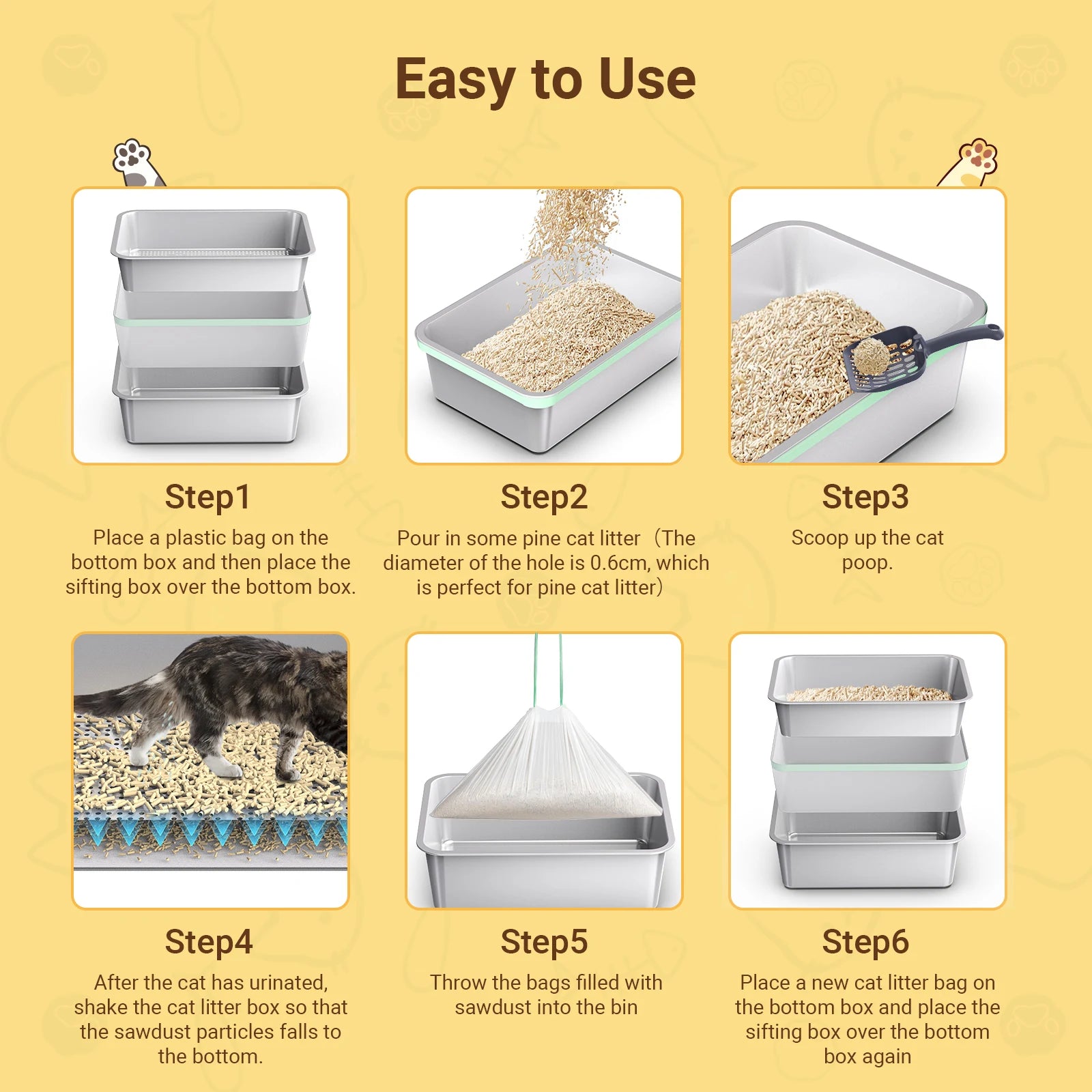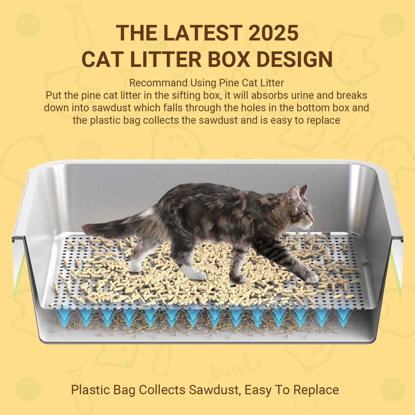 XL Stainless Steel Cat litter box, Sifting Cat Litter Box for Wood Pine Pellets, for big/fat cat, Ordor control, Easy Clean